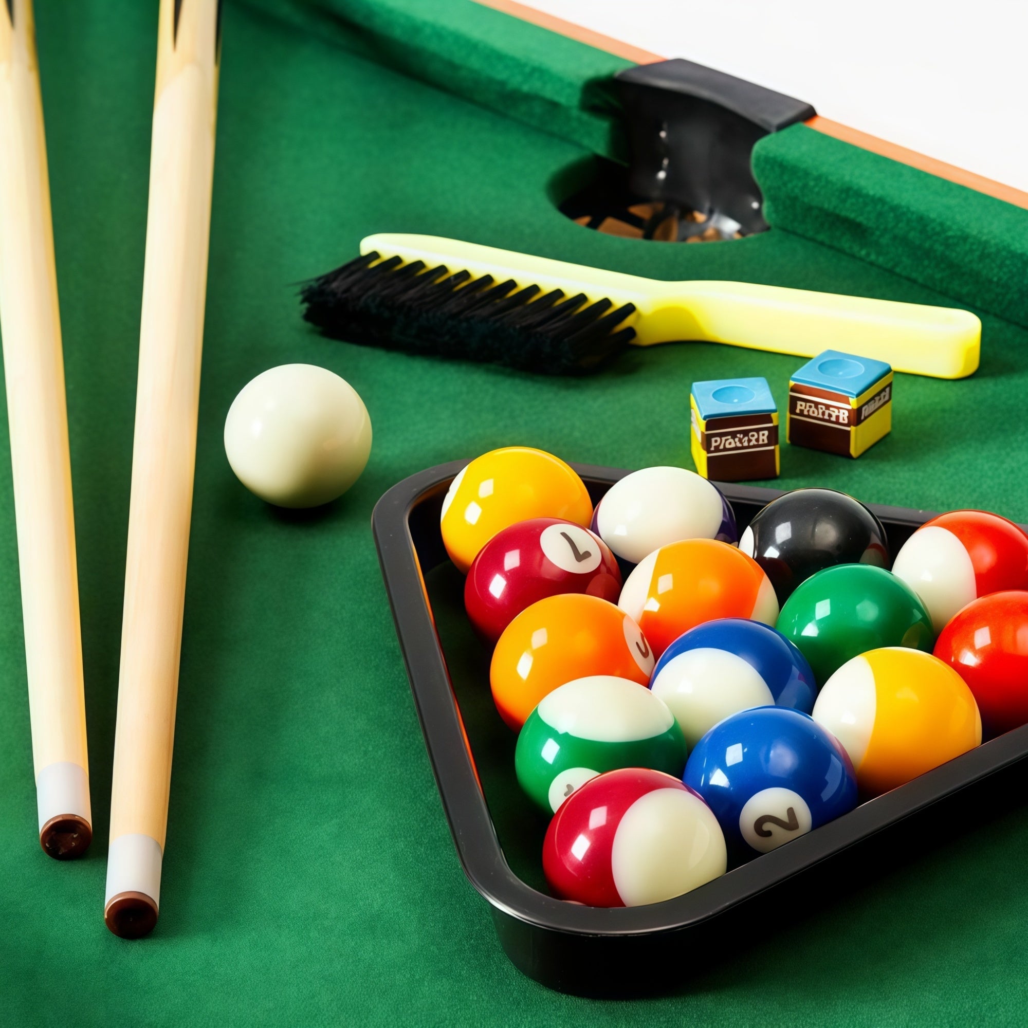 Featuring wooden cues and a professional-style setup, this tabletop pool table offers a true-to-life experience while being durable enough for long-lasting fun, even with frequent play.
